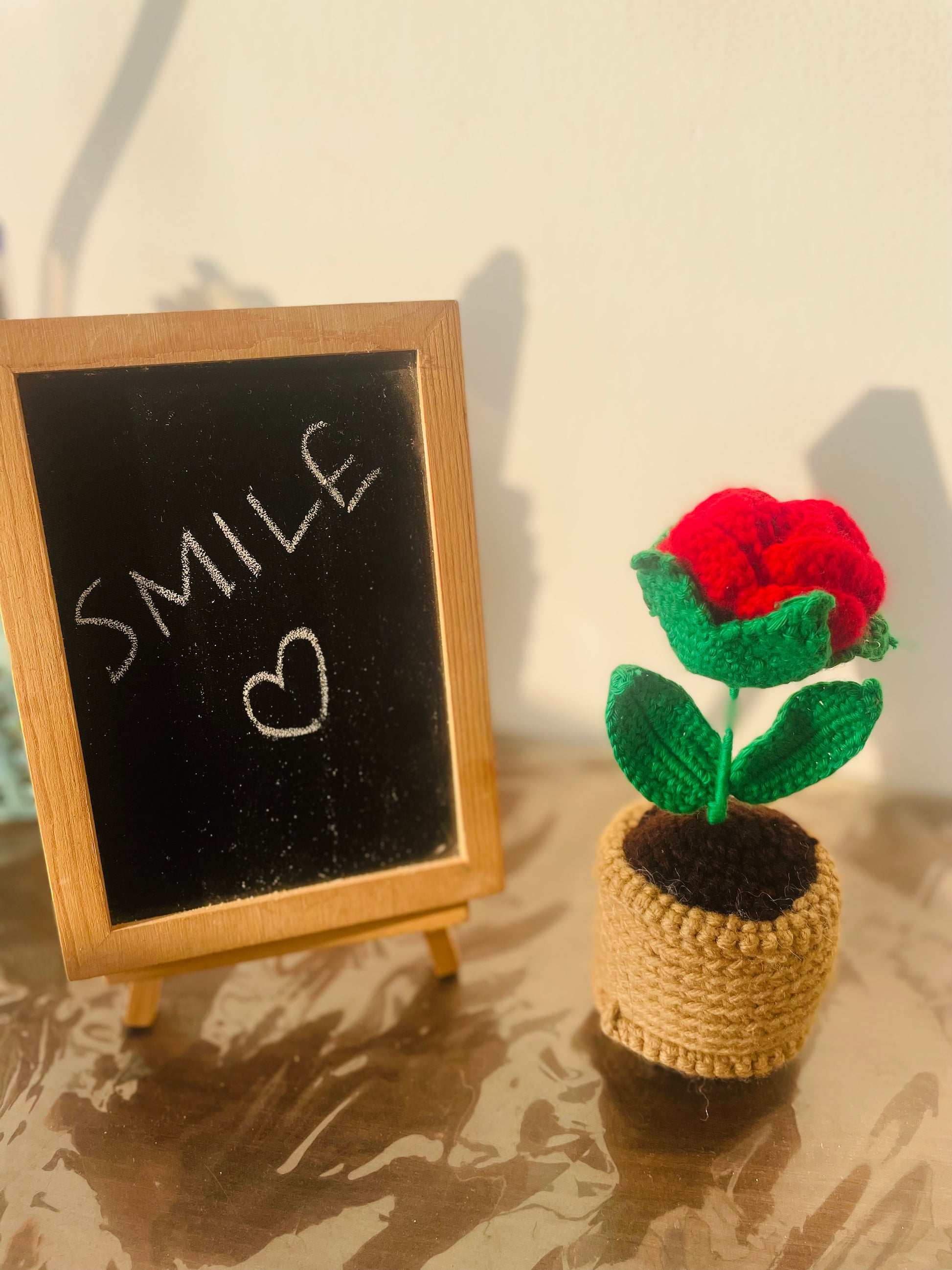 Crochet Red Rose flower Pot