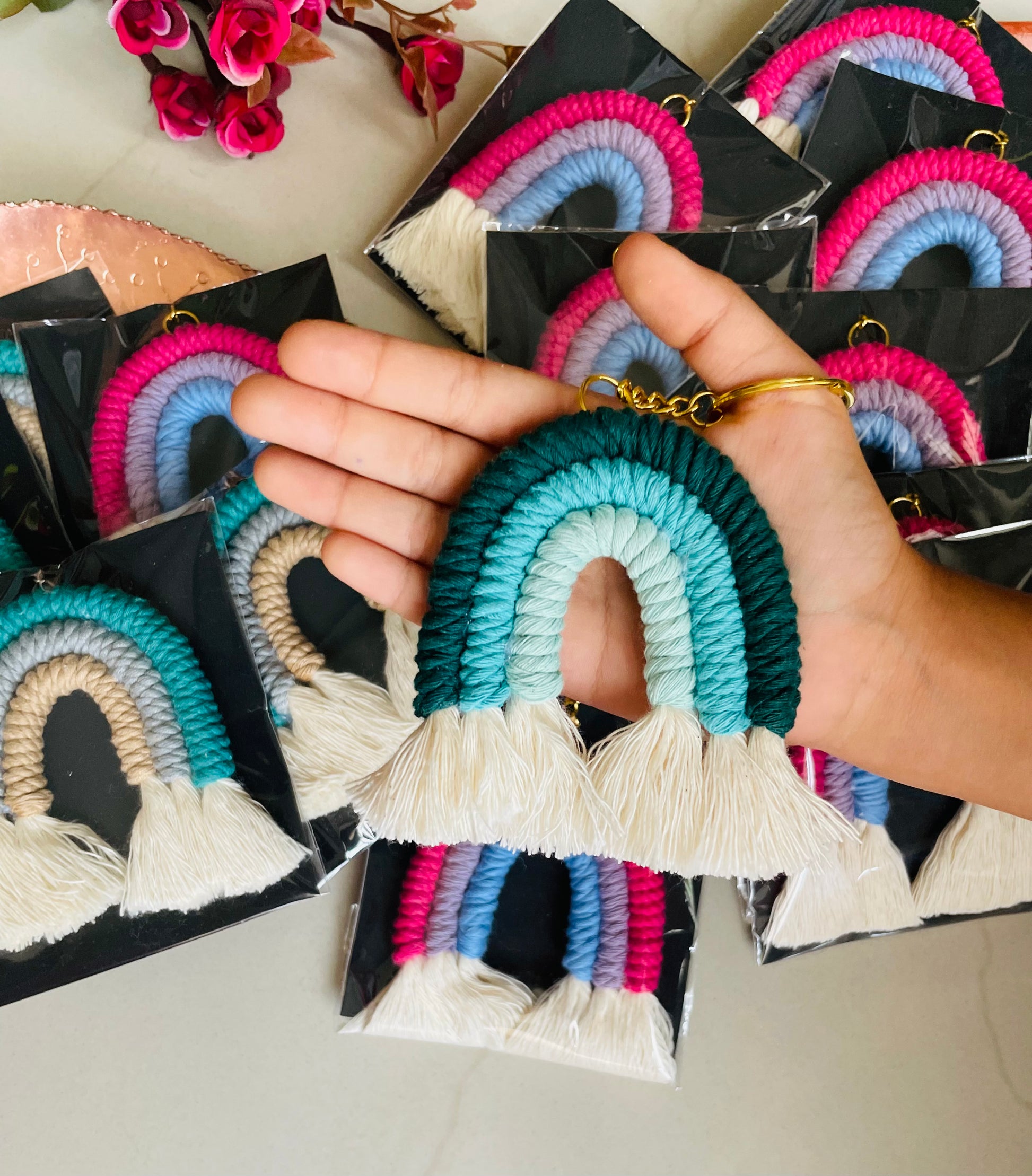 - Set of 5, Assorted color 3 layer rainbow keychain
