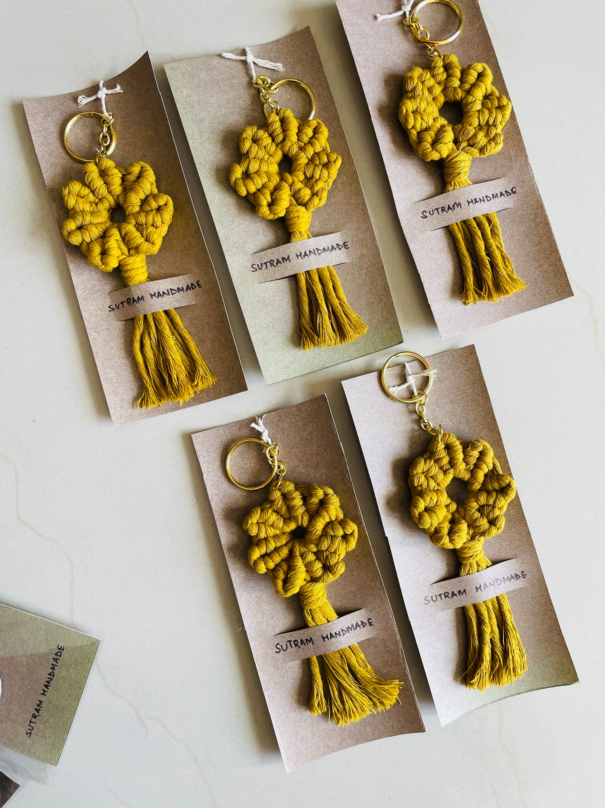 Manufacturer: SUTRAM Handmade MacrameItem Weight: 20.5 gNet Quantity: 3.00 keychainsGeneric Name: flower KeychainMaterial: CottonColour: Assorted